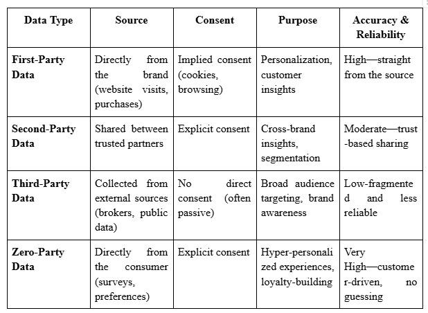 To understand the true power of zero-party data, it helps to know how it compares to other types of customer data. Here’s a quick rundown: