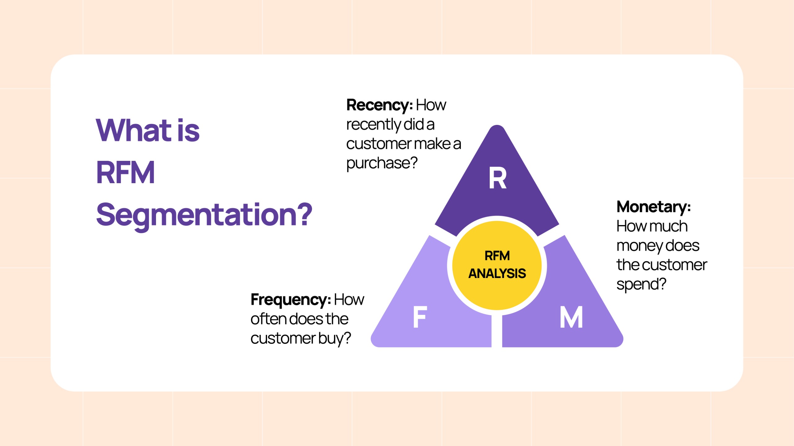 Good targeting starts with segmentation—grouping customers based on behavior and value. One of the easiest and most effective ways to do this is with the RFM segmentation model.