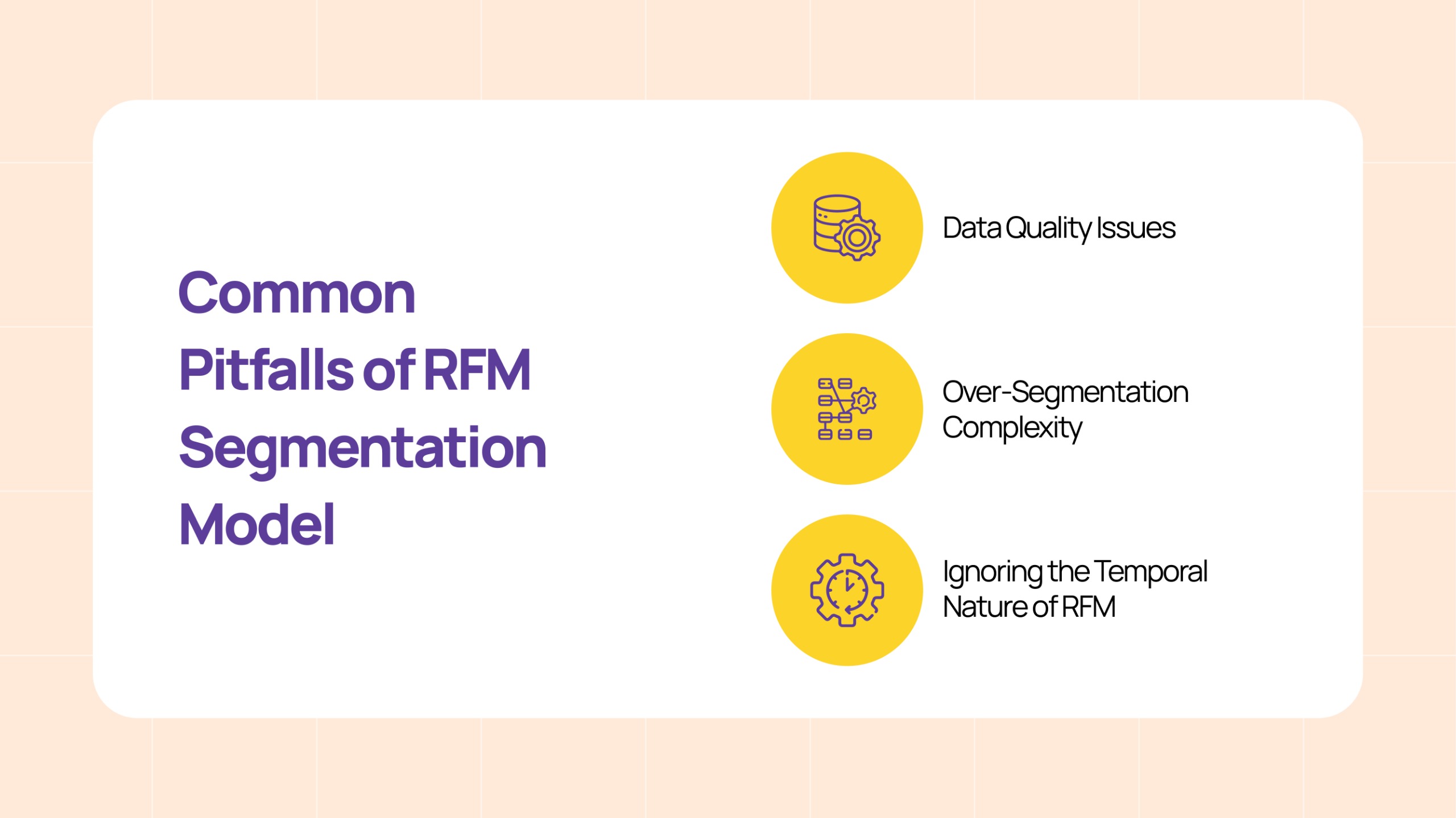 While the RFM segmentation model is powerful and widely used, it is not without challenges. Understanding these pitfalls can help you avoid mistakes that reduce the effectiveness of your segmentation and campaigns.