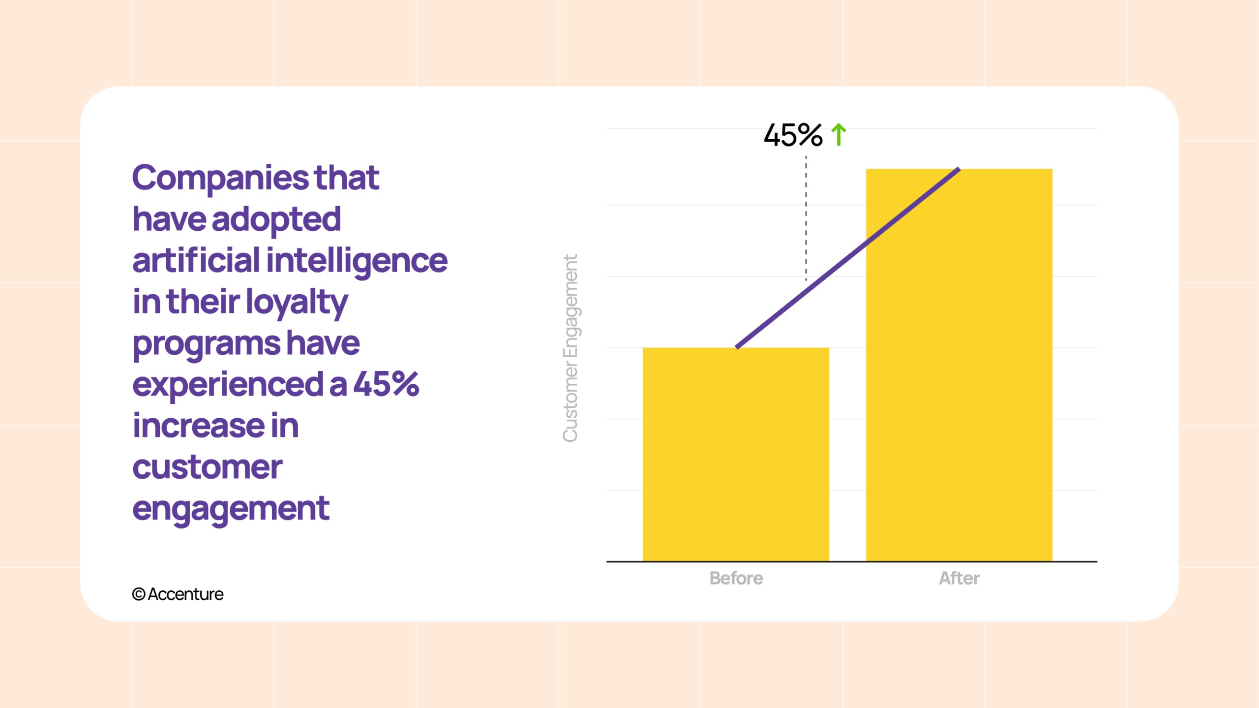 According to the latest stats of Accenture, companies that have adopted artificial intelligence in their loyalty programs have experienced a 45% increase in customer engagement.