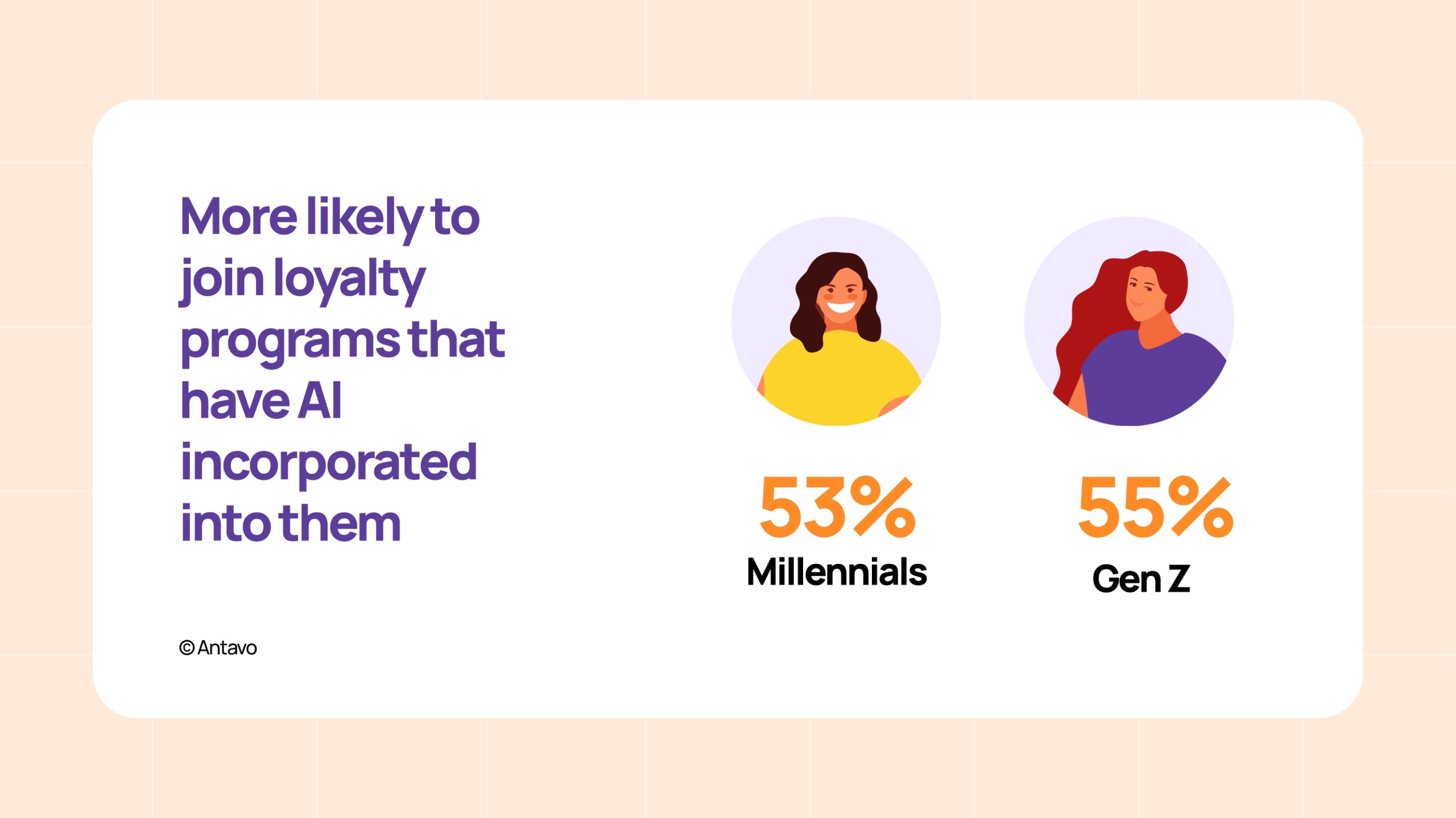 According to the global customer loyalty report of Antavo, 55% of Gen Z and 53% of Millennials are more likely to join loyalty programs that have AI incorporated into them.